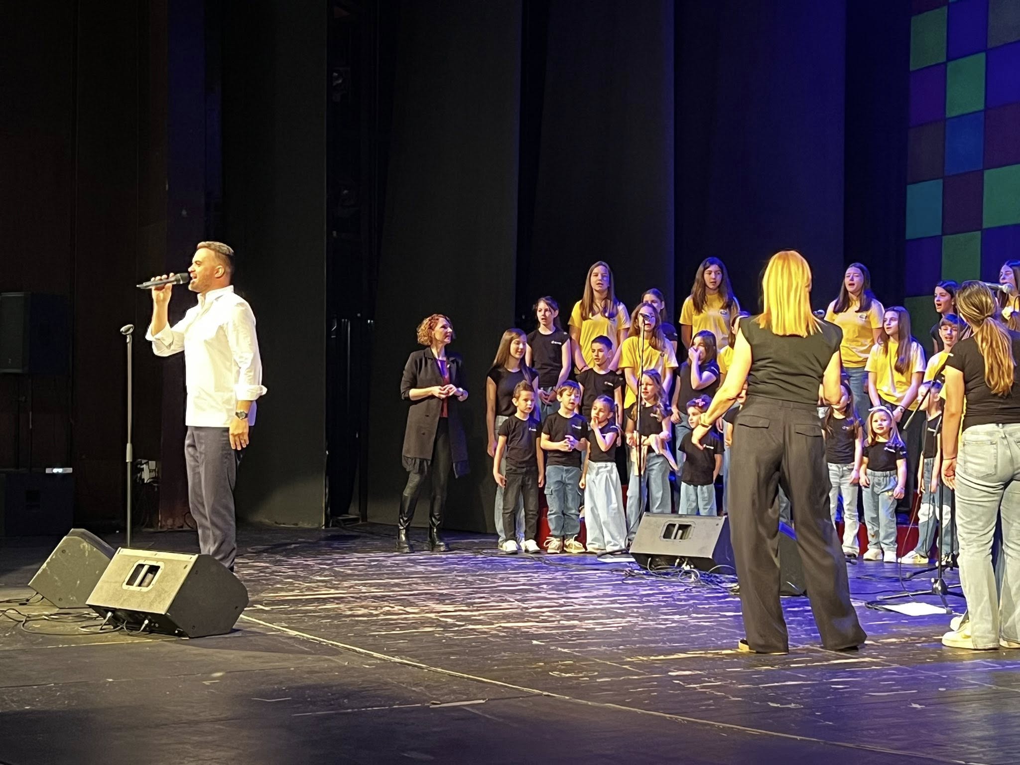 Наши млади посетиоци, као и сви љубитељи дечије музике, уживали су у ведром и разиграном програму који је предводио Душан Свилар. На сцени су му се придружили хор ОШ „Димитрије Давидовић” и дечији хор „Ла ла ленд”, са којима је извео низ популарних дечијих песама.