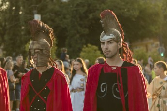 Проб је приказан са својим војницима и весталкама – свешетеницима богиње Весте задуженим за чување вечне ватре која симболише постојаност и трајност Римског царства и обезбеђују милост богова.